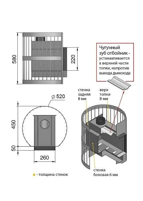 Диаметр дымохода, мм