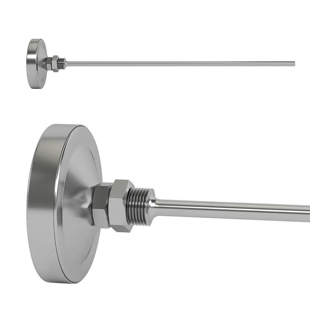 Корпус термометра выполнен из нержавеющей стали и защищён жаропрочным стеклом.