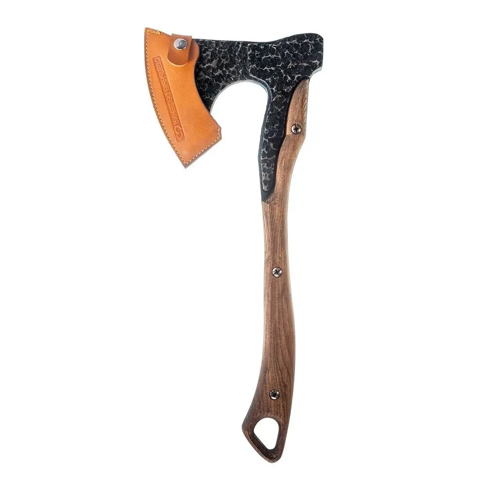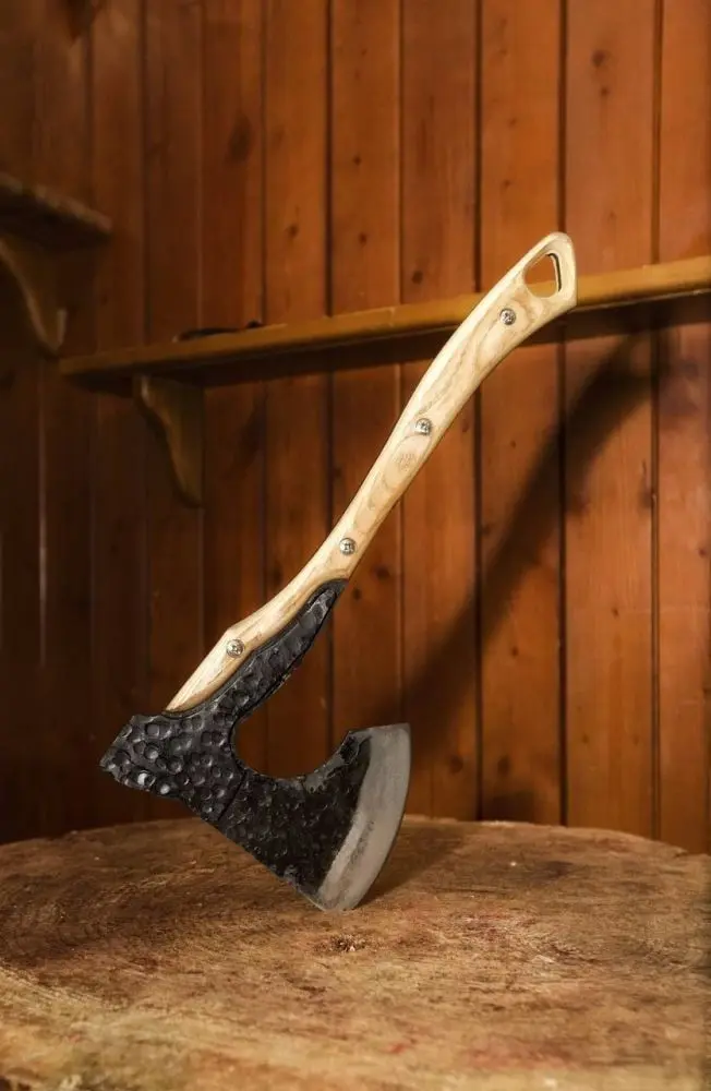 Изготавливается из цельнолистовой углеродистой конструкционной стали марки ст45. Толщина стали – 6мм. Режущая кромка имеет базовую заточку с длиной лезвия 11см. Рукоятка изготовлена из ясеня, обработана маслом и имеет удобный хват. Топорище имеет удлинённую переднюю часть для защиты рукоятки от повреждения во время рубки. Заготовки проходят закалку в горне, а затем отковываются на механическом молоте и вручную. Рабочее лезвие защищено от ржавчины покрытием в технике “воронение”.