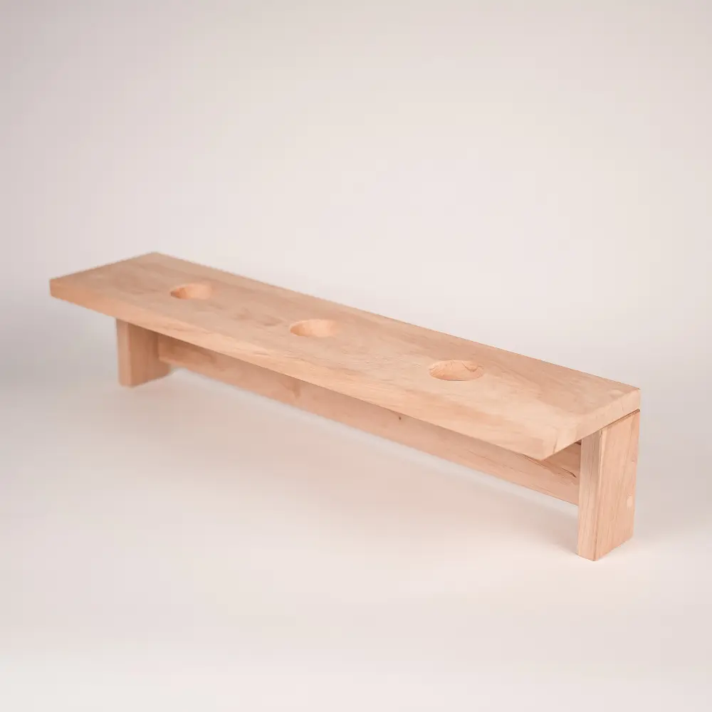 Полка для трав и веников на 3 отверстия в из массива Кавказской ольхи предназначена для дома, бани или влажных помещений. Для защиты древесины рекомендуется покрытием натуральным маслом после установки