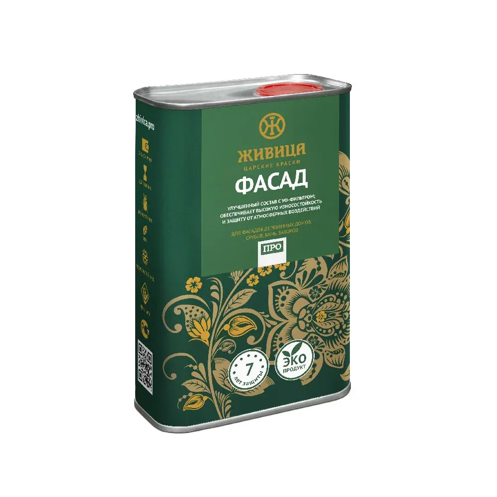 Фасад Живица Про 1 л - финишное покрытие для поверхностей, подвергающихся интенсивным атмосферным воздействиям.