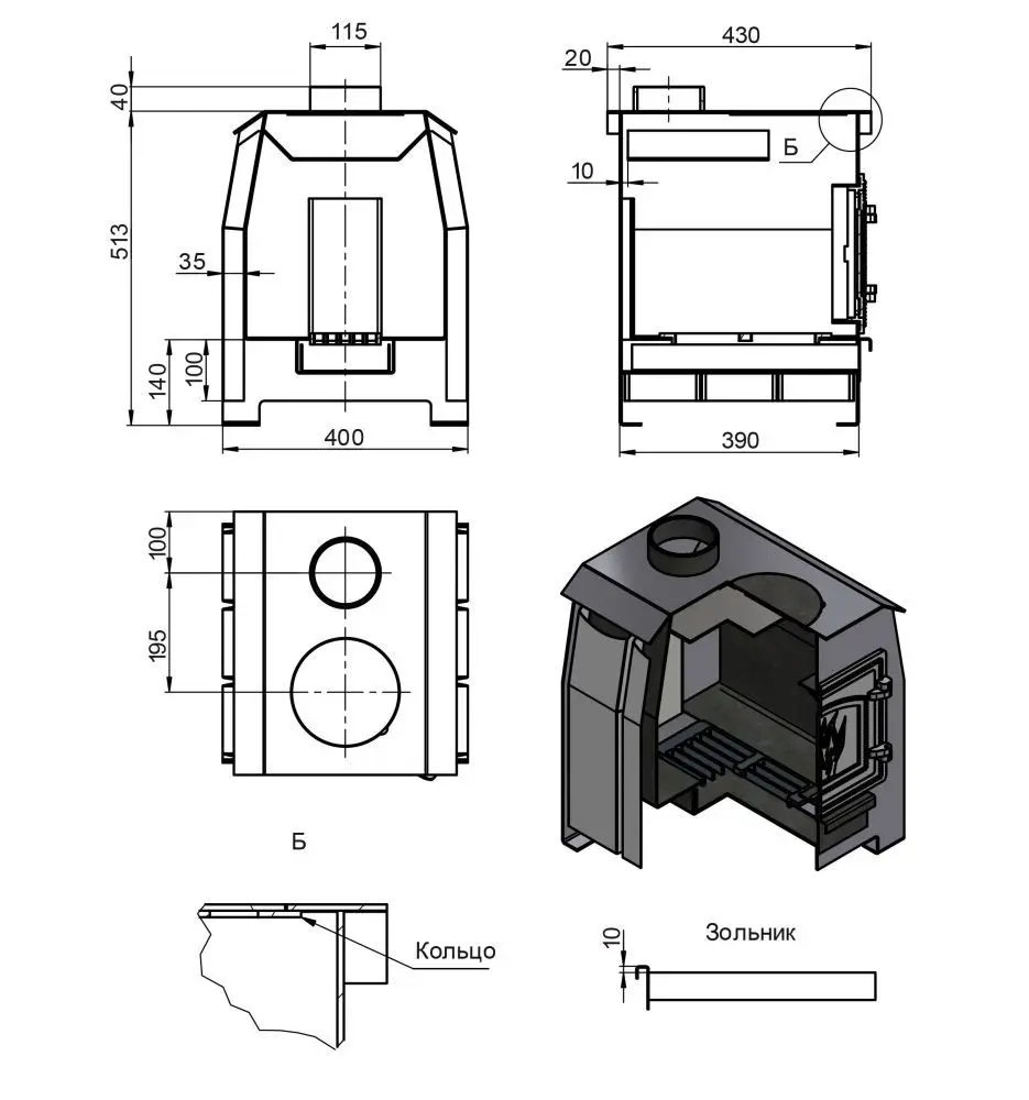 Диаметр дымохода, мм