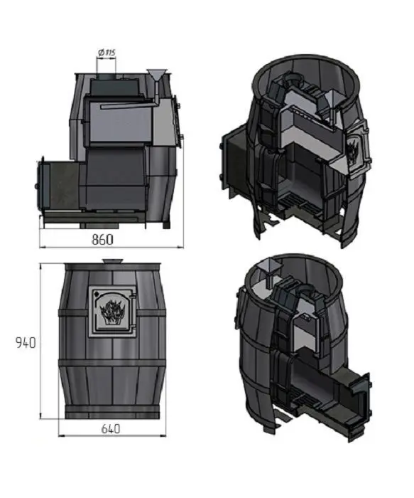 Легенда Русский пар 24» отличается от своей предшественницы дровяных печей для бани «Легенда Ураган» прежде всего наличием закрытой каменки, которая охваченная круговым потоком пламени, в которой камни прогреваются до температуры 600 °С, что позволяет создать в парилке наиболее благоприятный микроклимат, не пересушивая и не перегревая воздух. Вес камней в закрытой каменке - 25-40 кг.