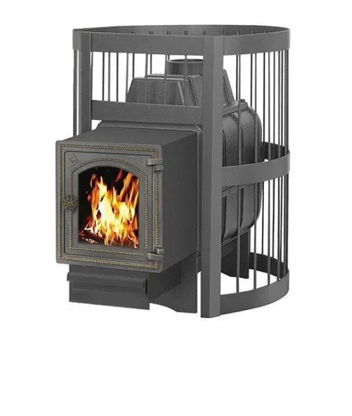 Банная чугунная печь Легенда Стандарт 16 (ДТ-4С) укомплектована чугунной не герметичной дверцей Везувий ДТ-4С с жаропрочным стеклом «SCHOTT ROBAX». Конвекционно-вентилируемый кожух "Стандарт" изготовлен из металлического прутка диаметром 6мм покрашенной черной термостойкой краской.