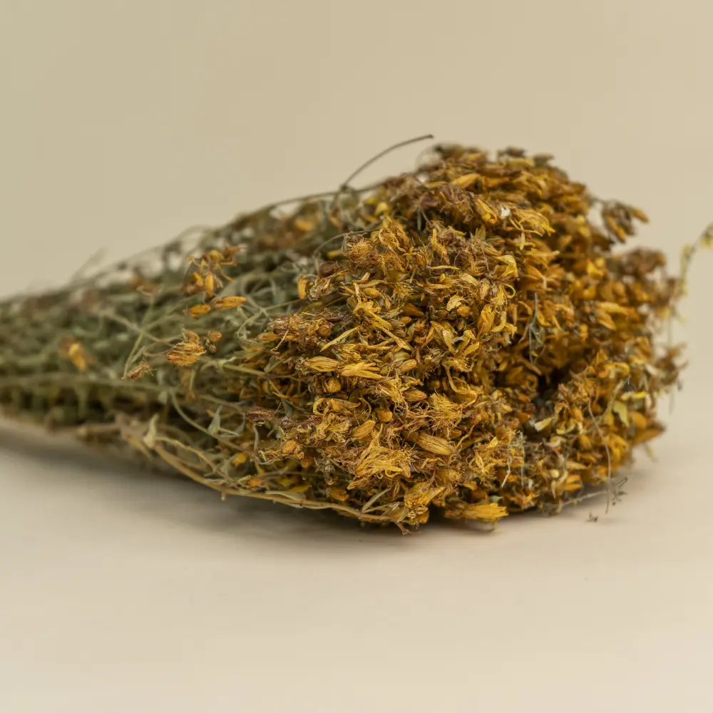 Зверобой для бани, собранный на кавказе — это высушенная трава многолетнего растения, используемая для улучшения самочувствия и лечения благодаря своим успокаивающим, противовоспалительным, регенерирующим и антибактериальным свойствам. В парилке аромат зверобоя снимает стресс и улучшает настроение, а отвар или пар с настоем травы ускоряет заживление ран, укрепляет иммунитет и улучшает состояние органов дыхания. Зверобой можно использовать, добавляя в воду для камней, либо запаривая с веником.
